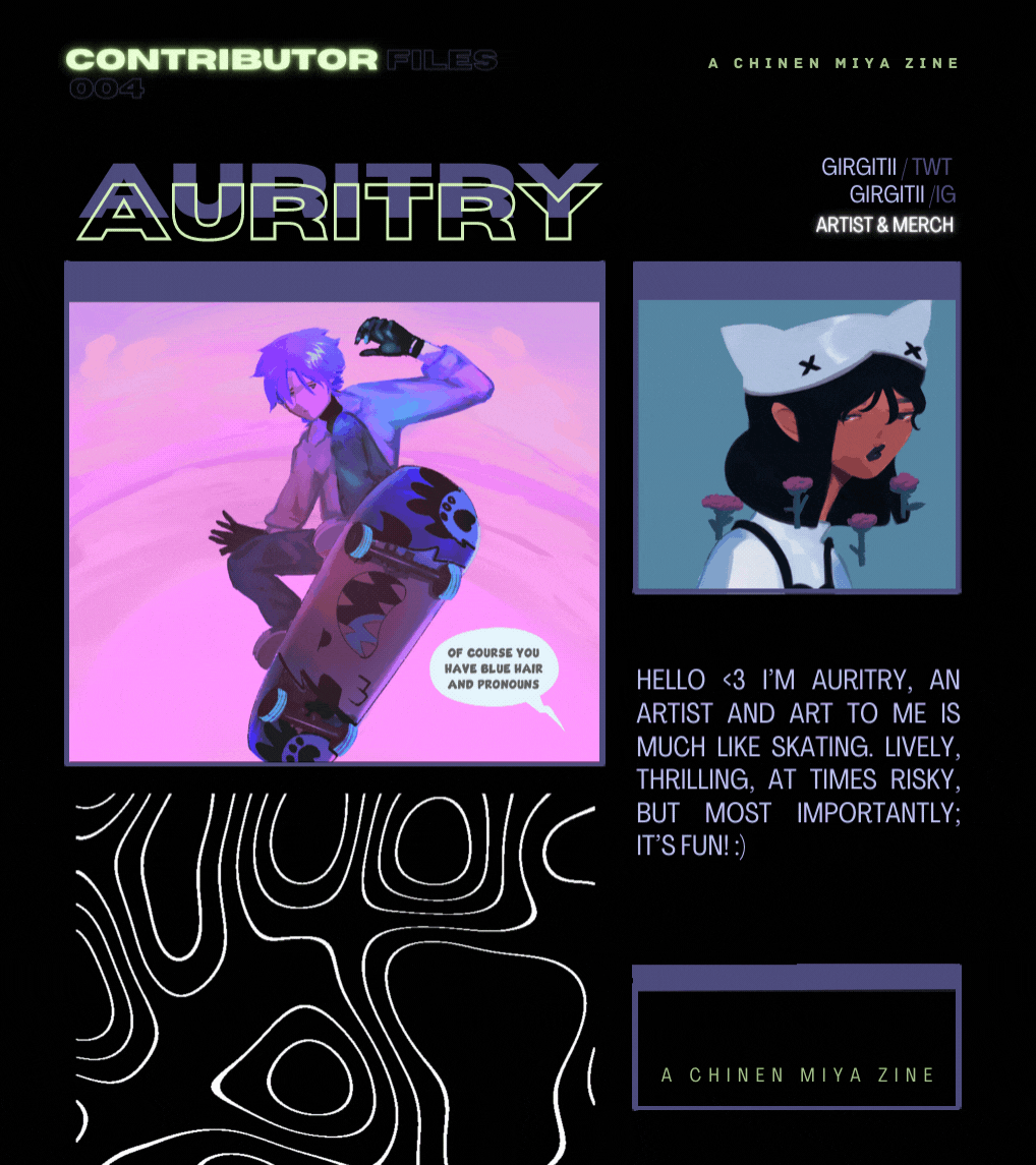 OFFLINE: a Chinen Miya Zine, creation period. position: formatting mod, art mod, web dev mod